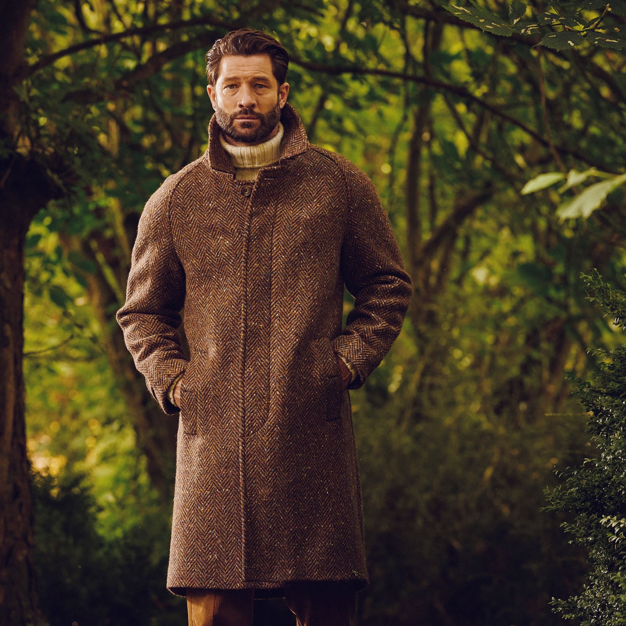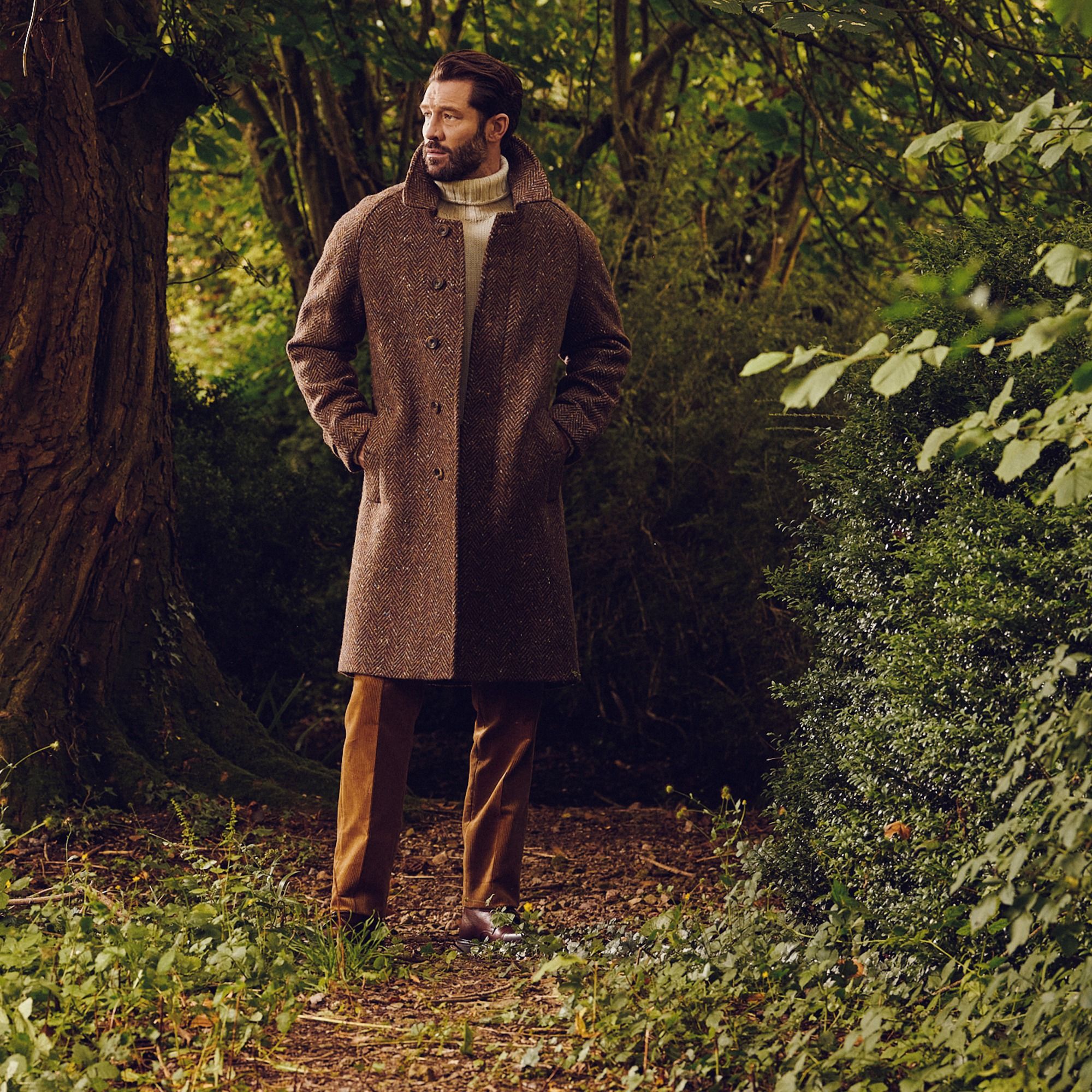 Impeccably crafted from authentic Irish Donegal wool, the Bark Herringbone Donegal Coat is a true expression of British style and enduring craftsmanship. Featuring a classic raglan sleeve, this coat allows for ease of movement and the 20oz (610gsm) wool provides warmth, durability and comfort. A timeless investment piece built to last through generations.