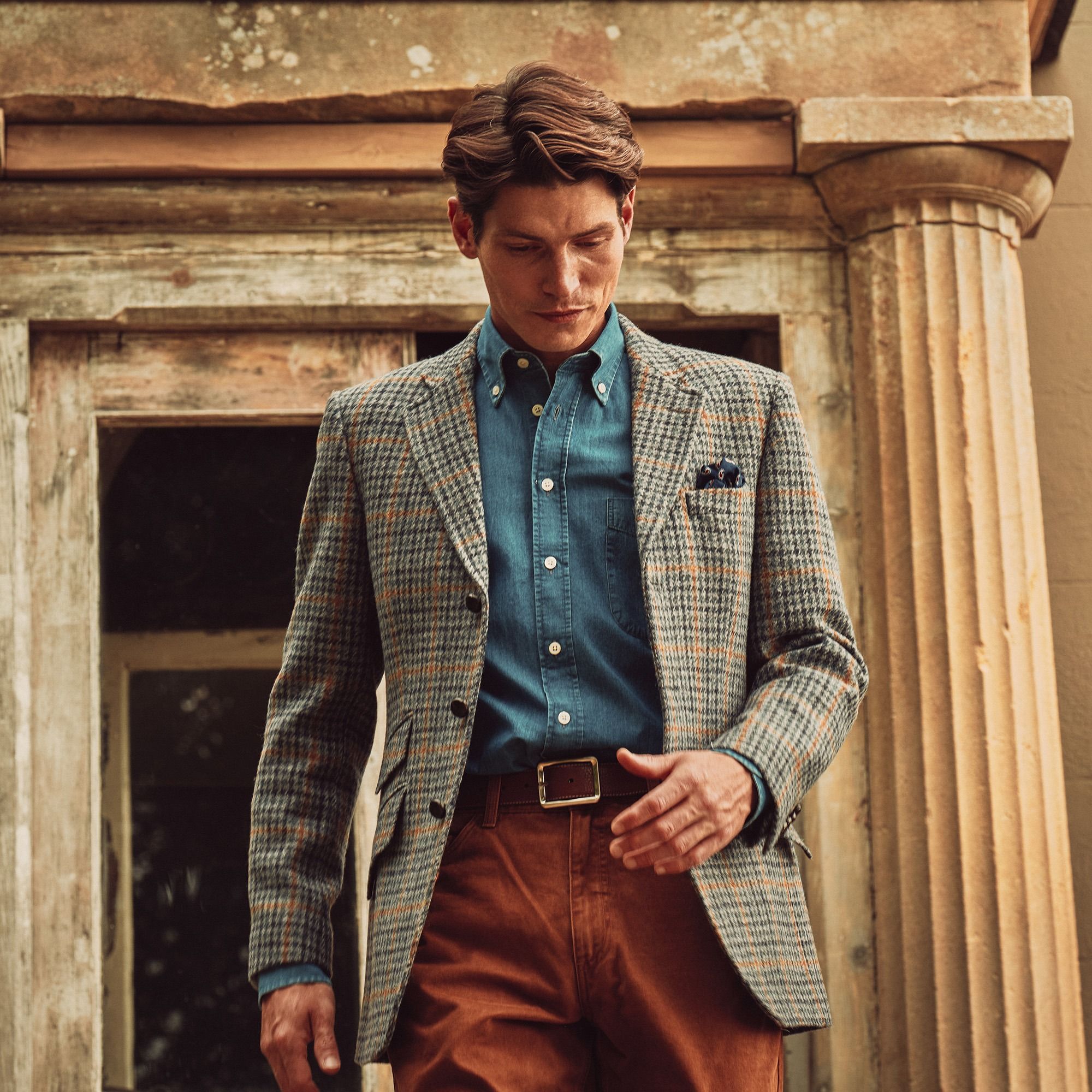 Woven in the windswept Outer Hebrides, this jacket is crafted from authentic Harris Tweed; the world‑renowned cloth that is handwoven by islanders using pure virgin wool. The Blue Barra combines rich earthy tones with the understated sophistication that only true Harris Tweed can offer, making it as at home in town as it is in the country.