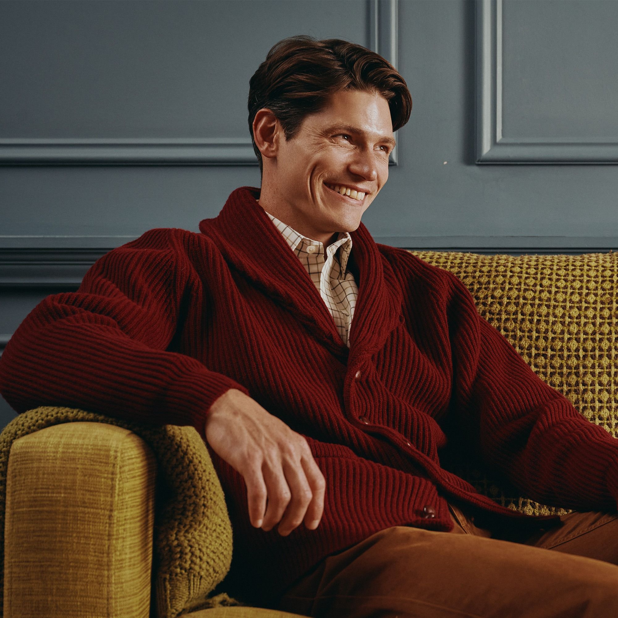A superb example of Scotland's knitwear heritage knitwear, our weighty 4 ply lambswool cardigan is a great addition to your wardrobe. Team with our tweed waistcoat and tweed trousers for a quintessentially British look.