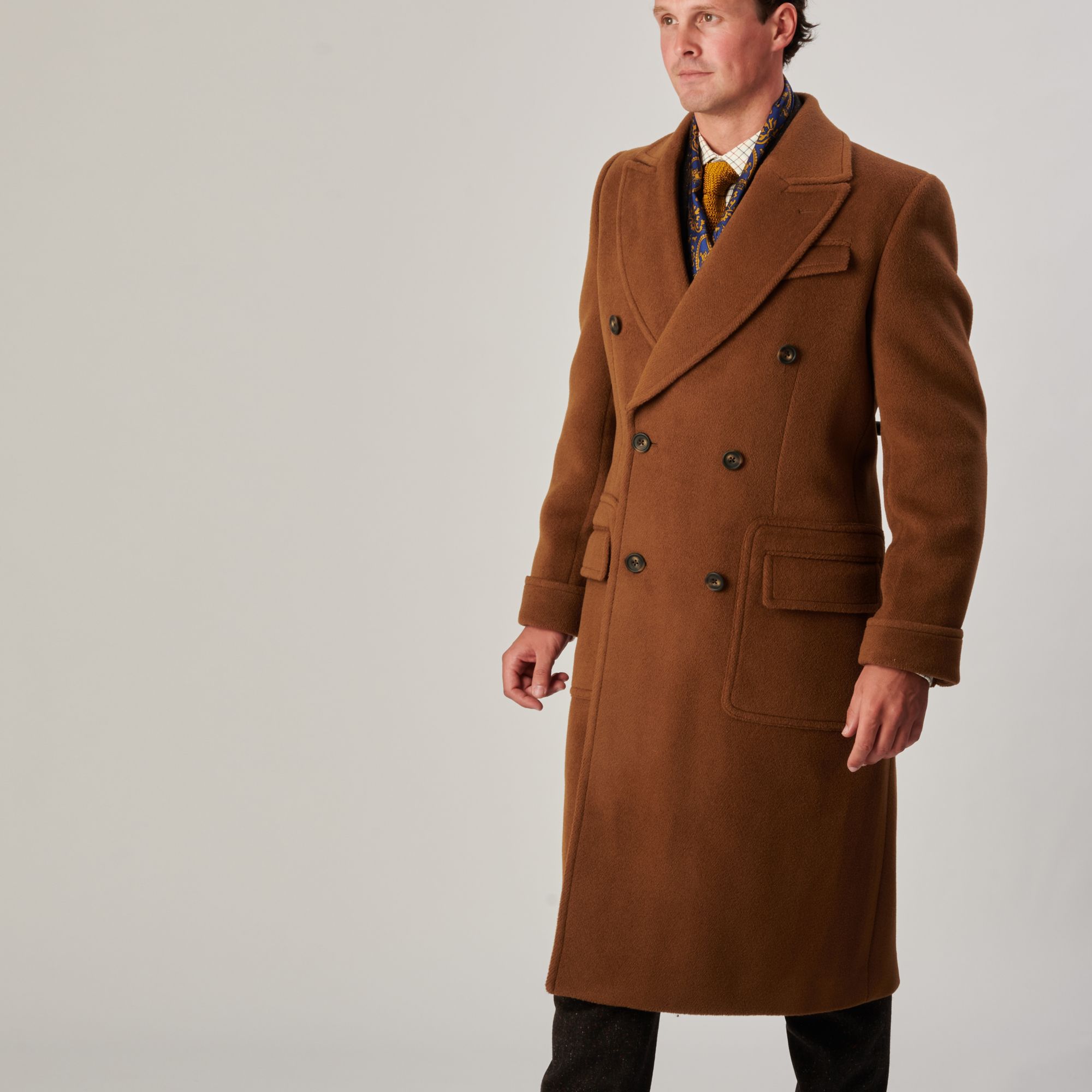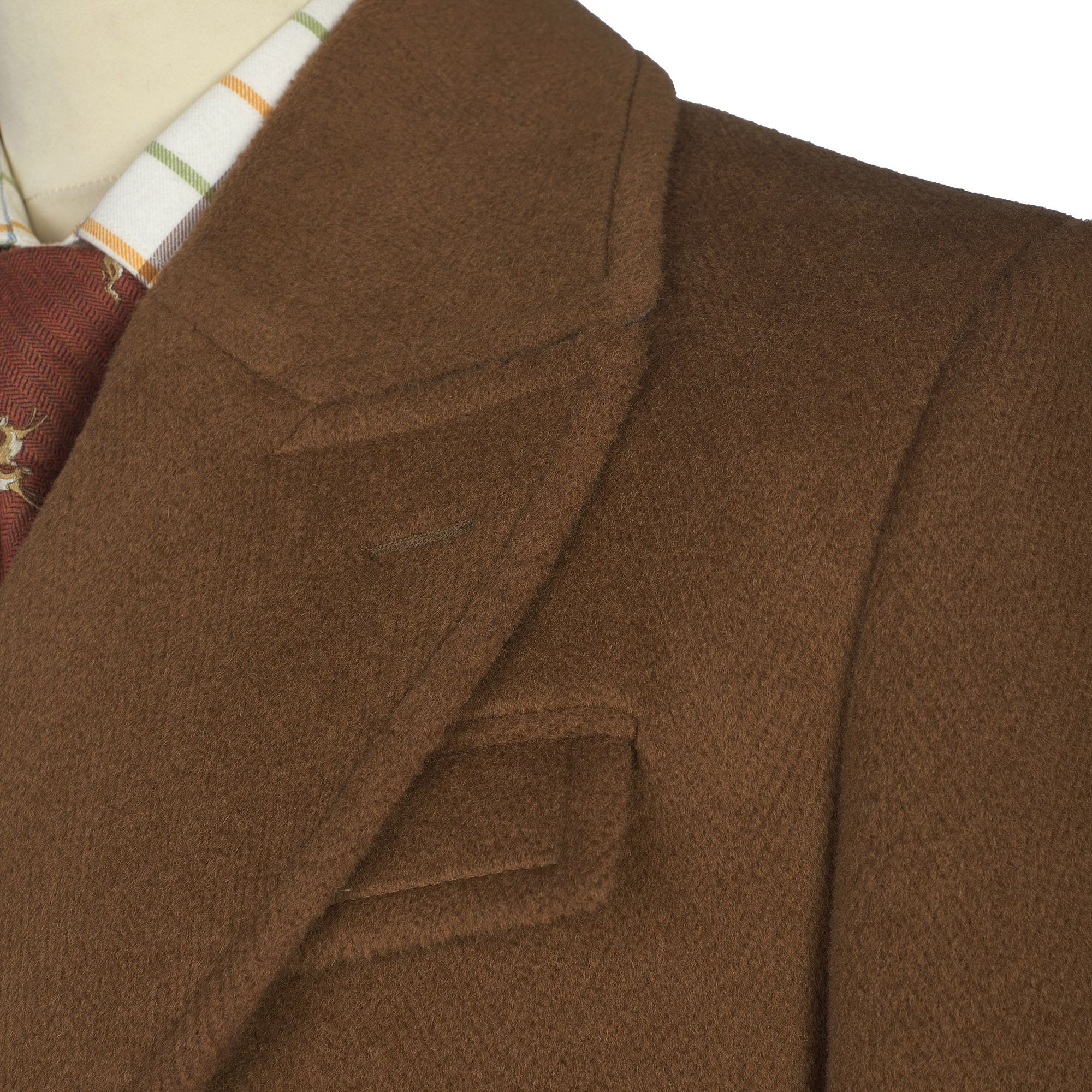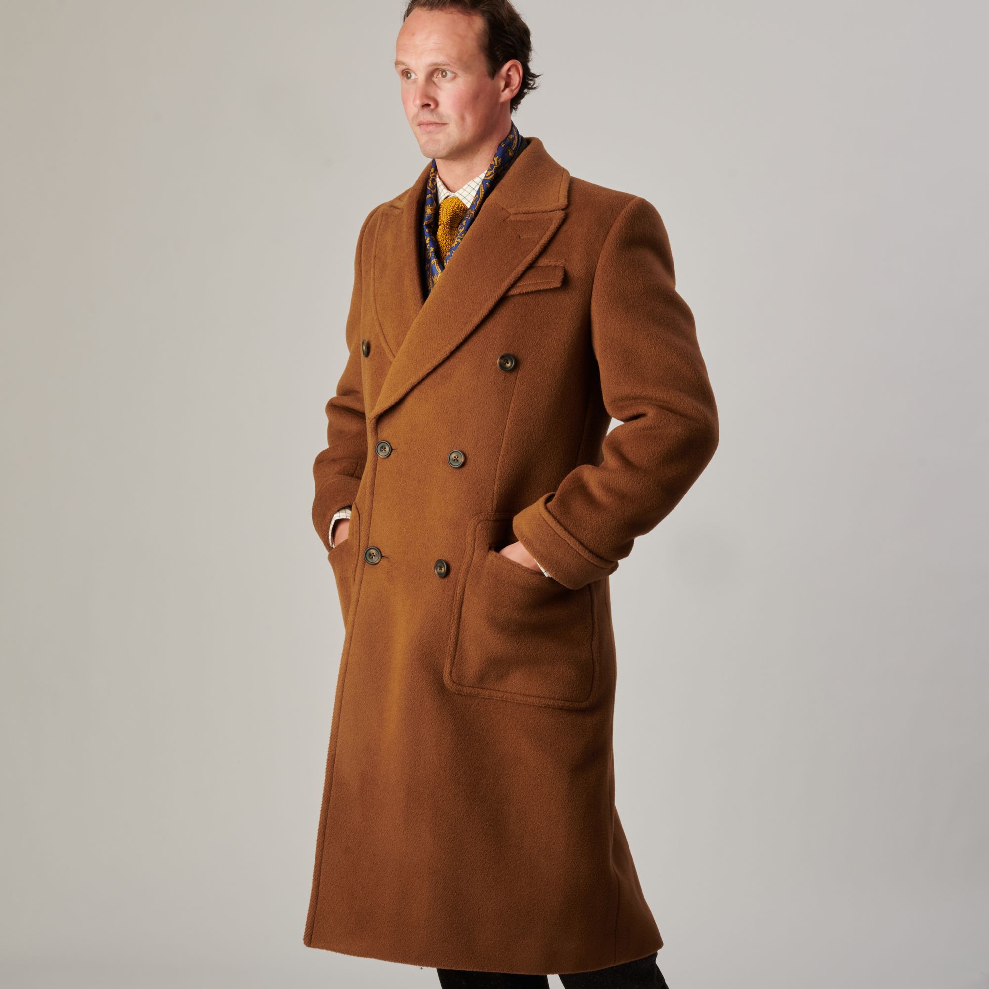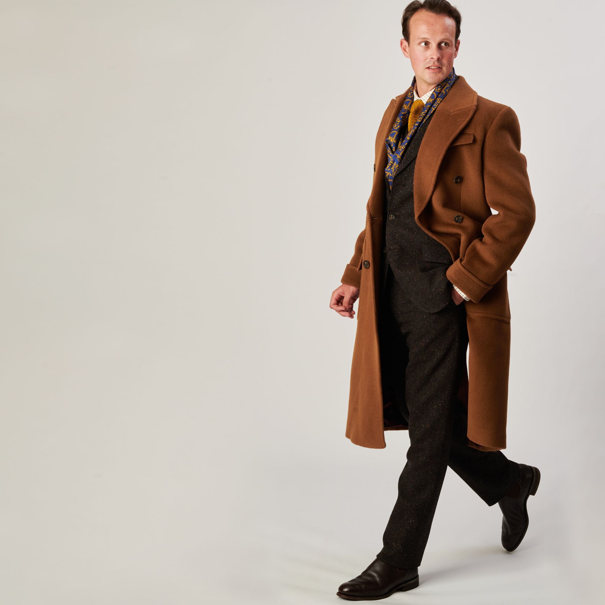 Based on a Chesterfield coat in a double-breasted style, with a set in sleeve and a gauntlet cuff. The pockets are an unusual laid-on patch style with pocket flaps, ensuring a neat silhouette. The back is finished with a deep centre vent. Internally there are two pockets and the coat is fully lined in our weighty Cording's Crest lining.