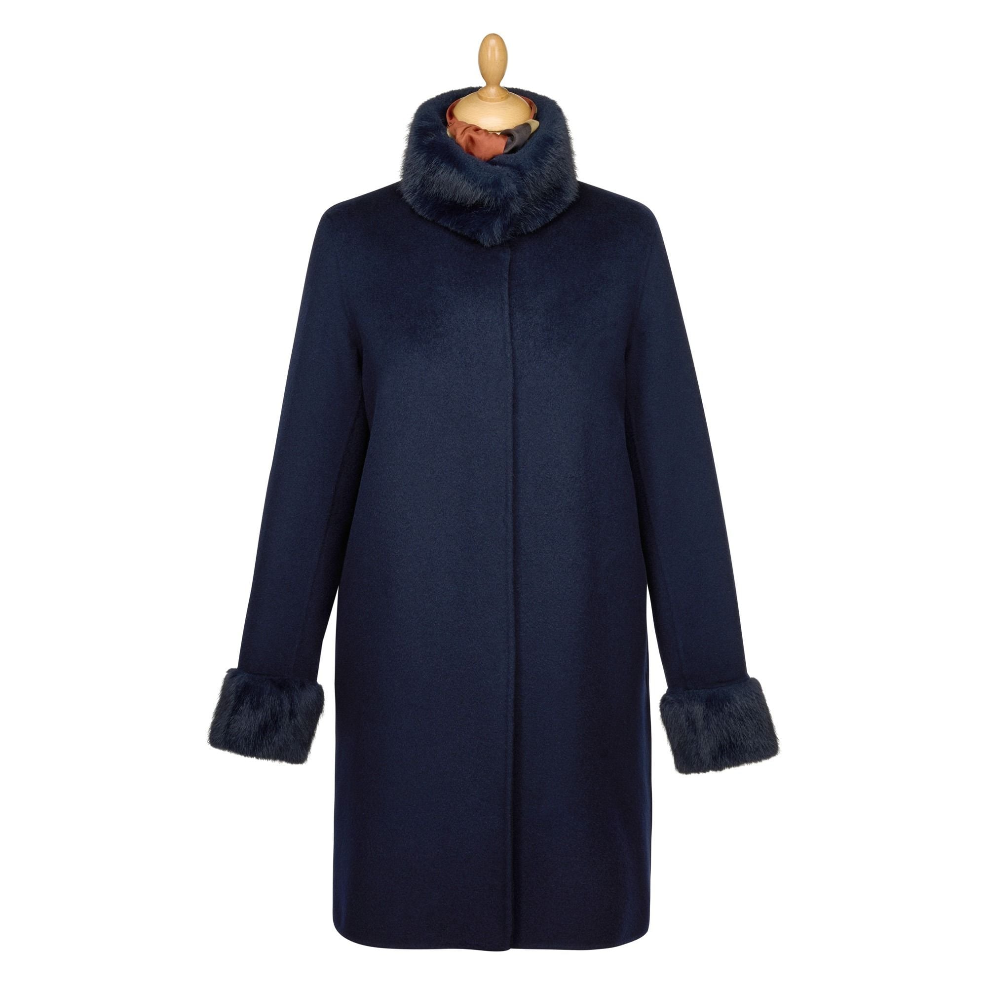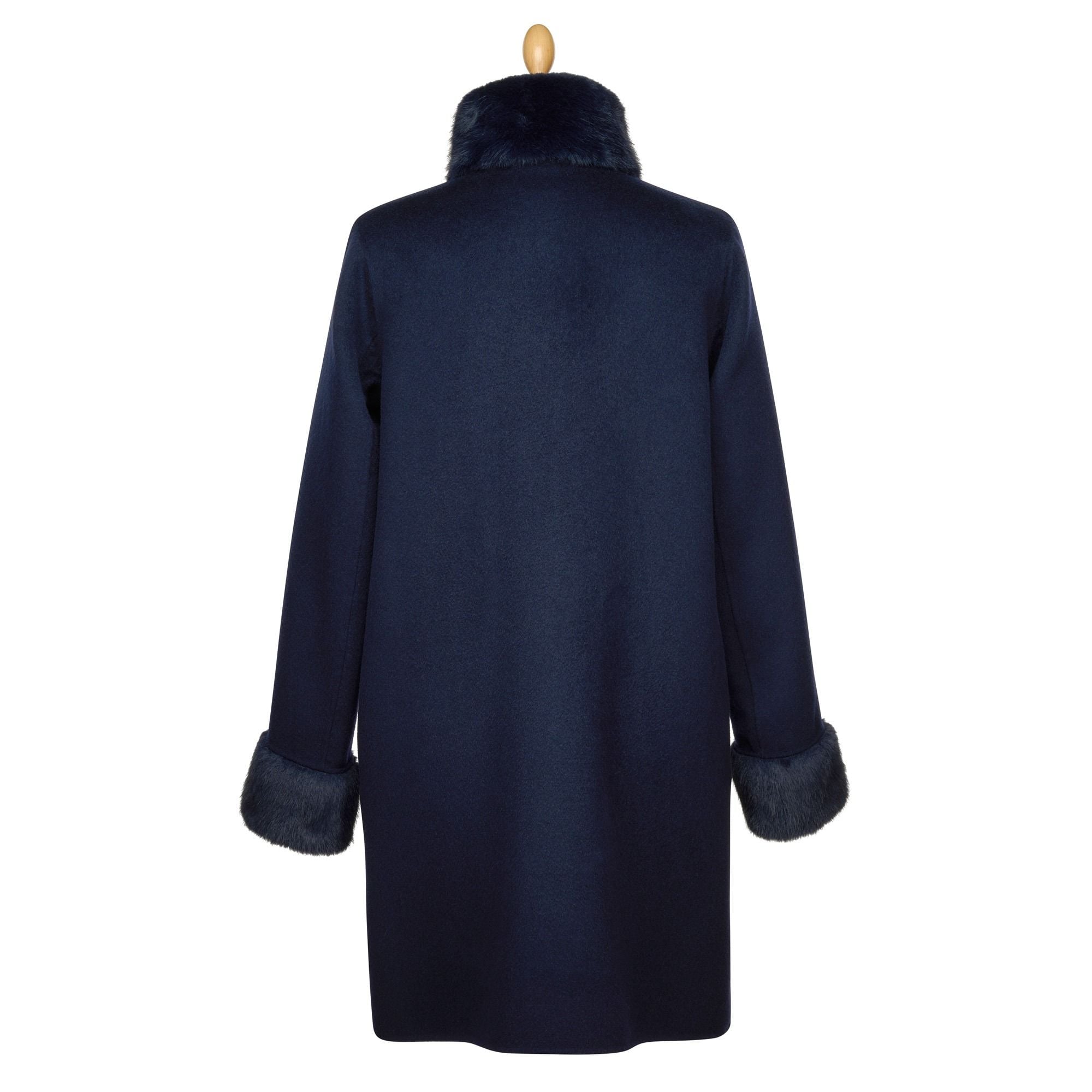 Navy Faux Fur Collar Coat