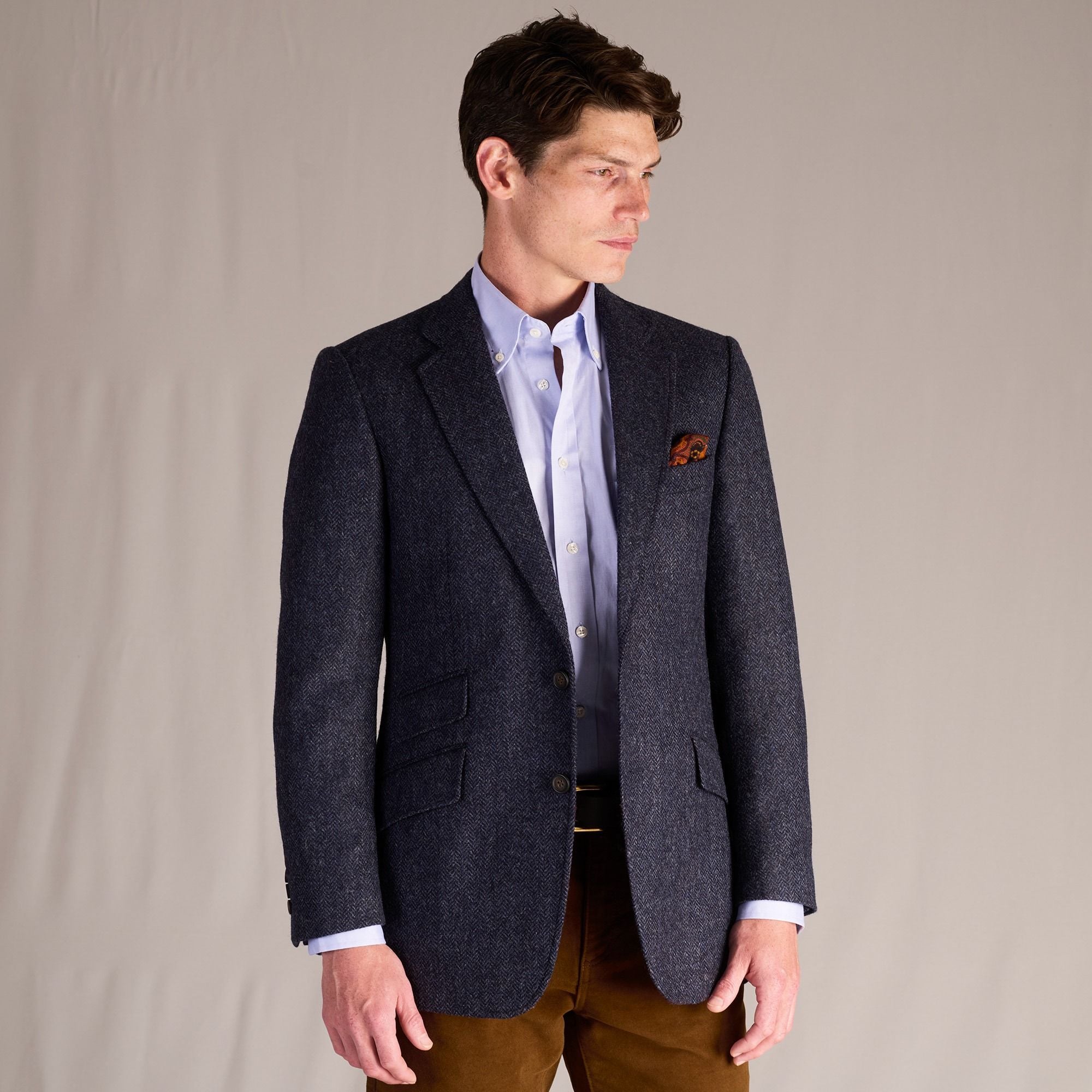 Woven in Yorkshire from a lightweight 12oz (370gsm) pure wool, the Haworth Blazer is a refined take on a tailoring classic. The subtle herringbone weave lends texture and depth, making it a versatile piece for both smart and relaxed occasions.