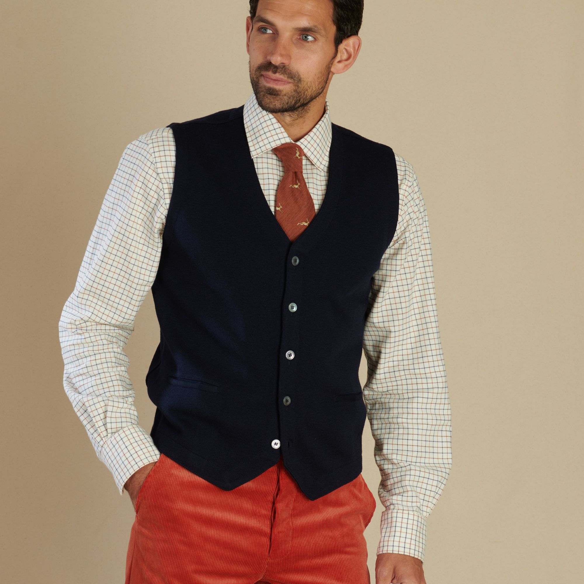 A staple in the Cordings collection, these merino waistcoats have proved supremely useful, effortlessly smart, they are equally happy under a city suit or a tweed jacket, and with an every changing collection of colours, many Cordings aficionados have one in every colour. A perfect partner to our tattersall shirts and silk ties