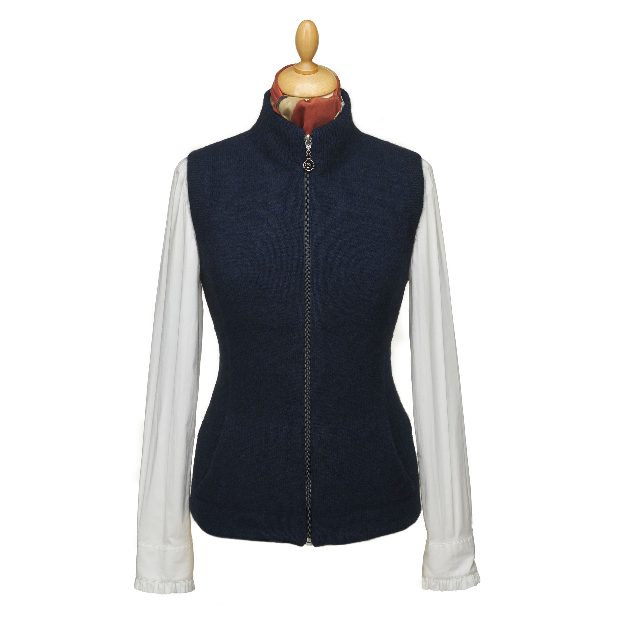 Made in New Zealand exclusively for Cordings in a lustrous and luxurious merino and possum blend. This zip gilet is flattering with a gently shaped silhouette. Perfect for colder weather layering or in place of a jacket slung over the shoulders.
