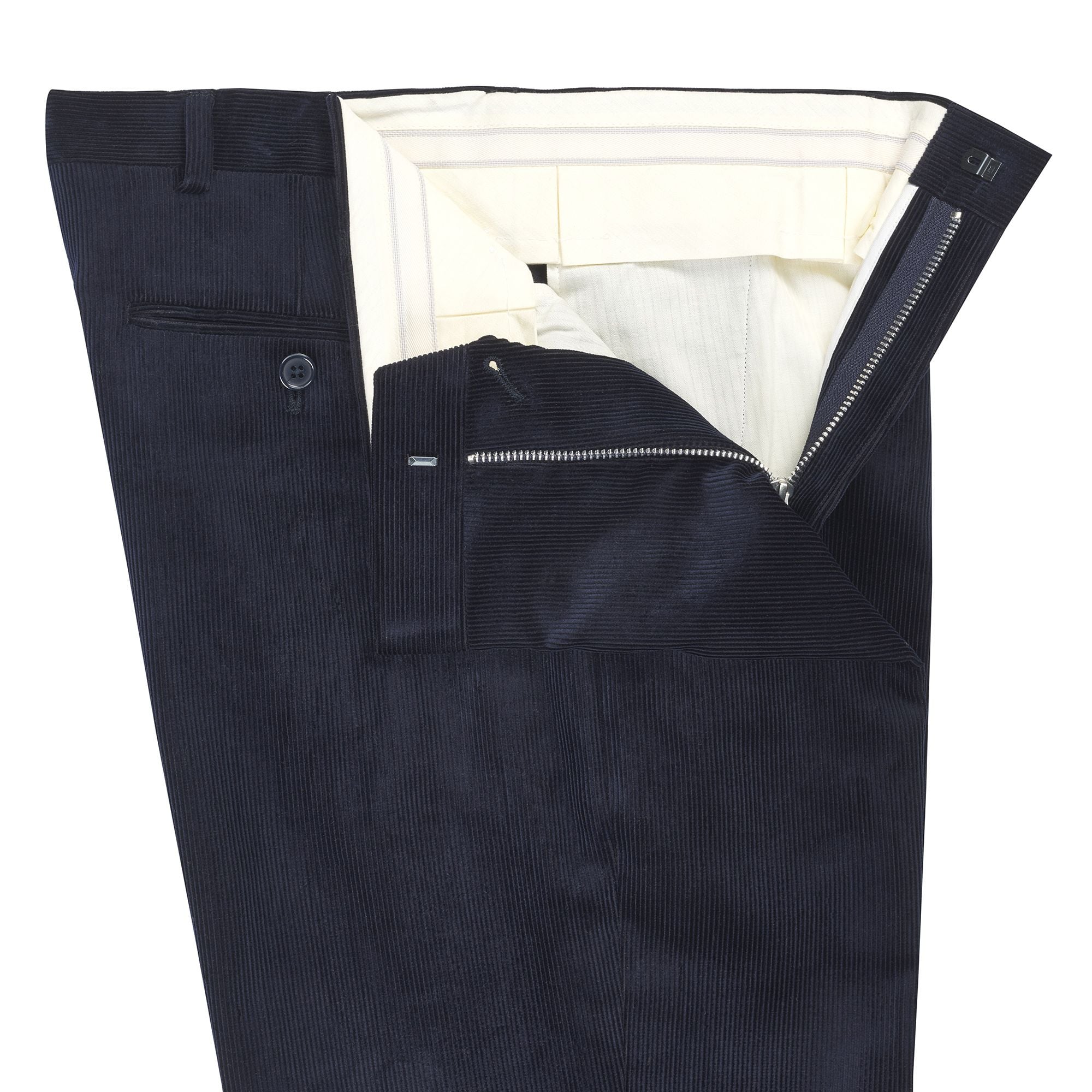A traditional favourite, tailored in a fine needlecord for a sharp look, these navy blue trousers manage to be classically smart while not compromising on comfort and softness. These have a loyal following amongst both our country and city gents.