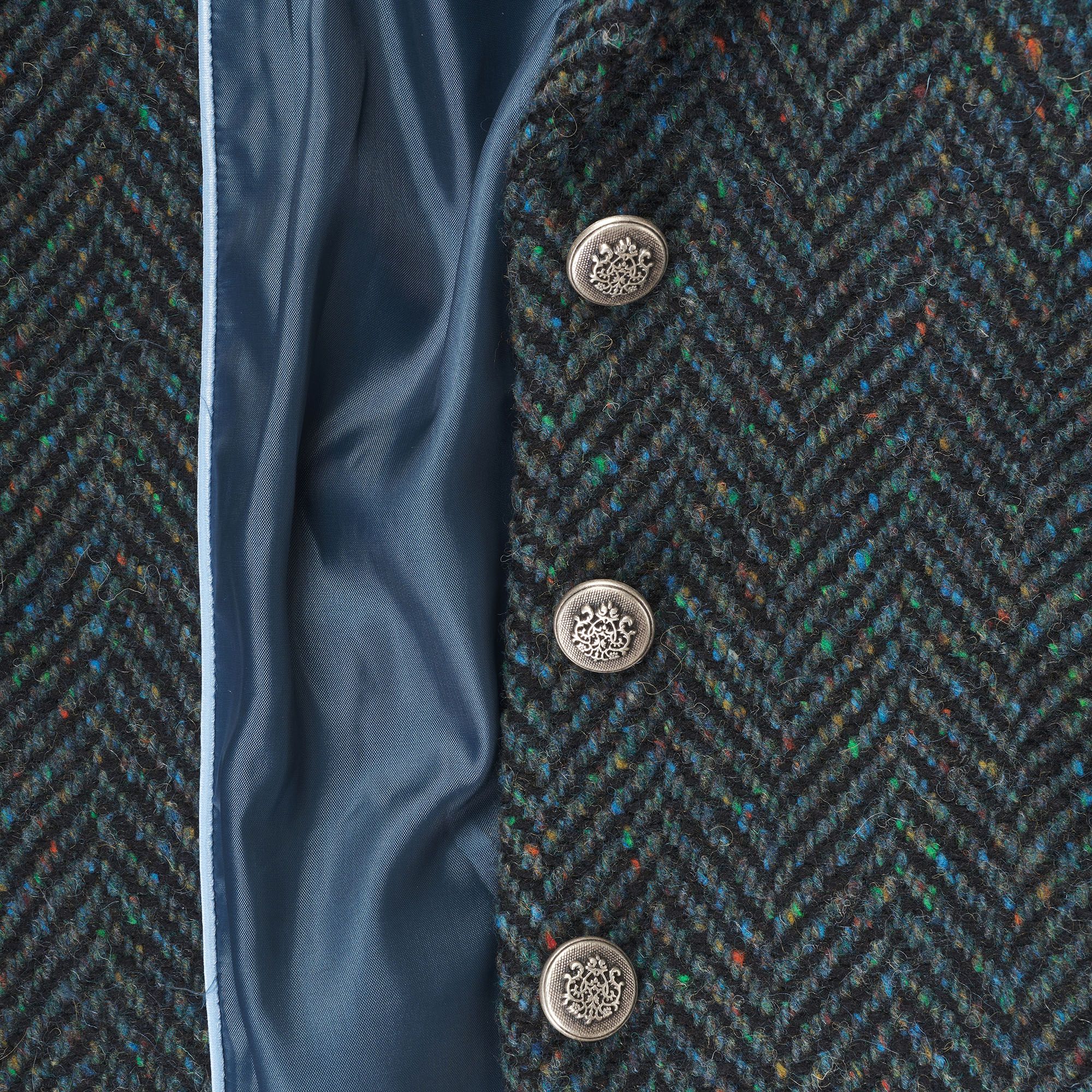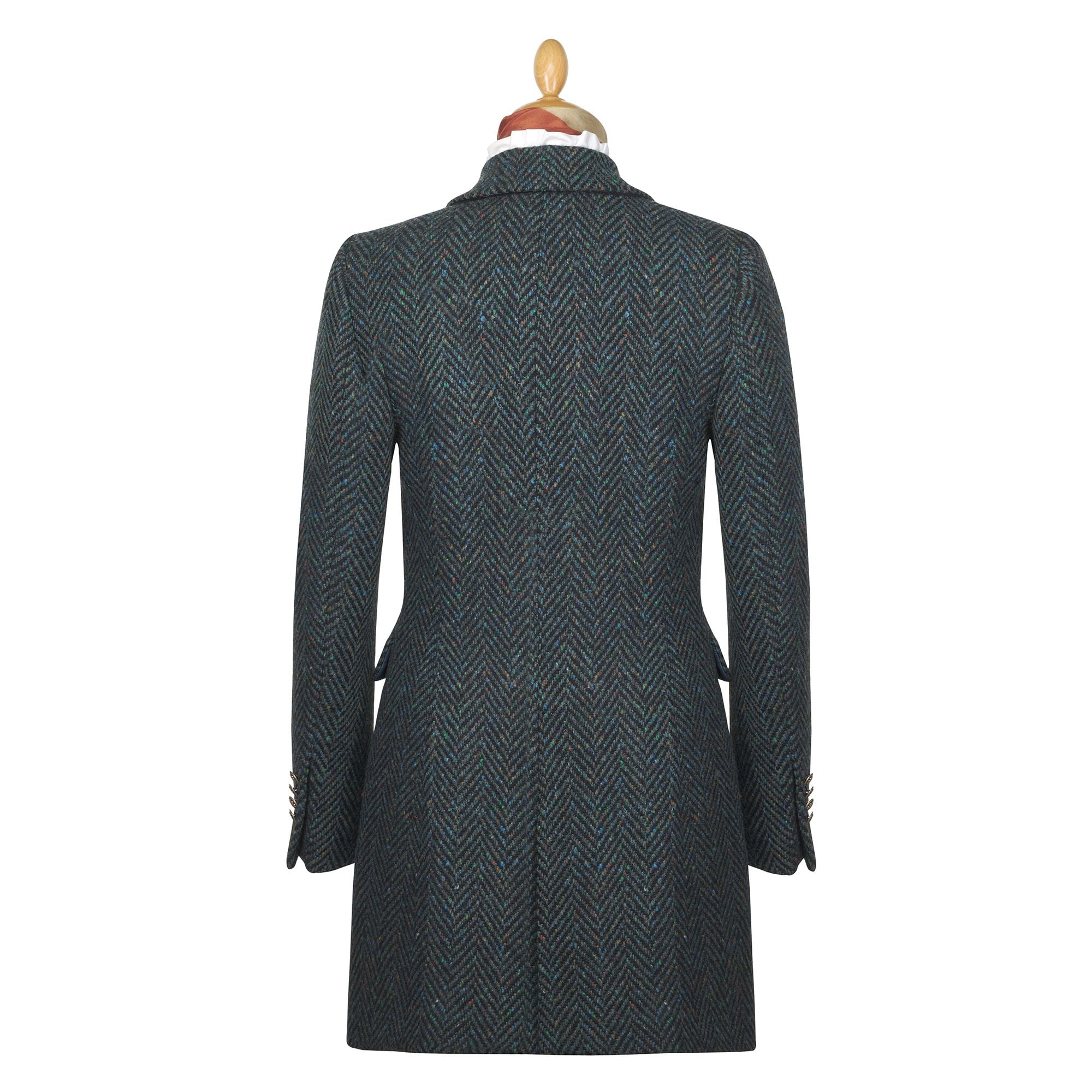 The latest edition to our ladies coat collection, the Harlington, is tailored in a smart, teal Donegal herringbone tweed. We've made it in our classic shorter three button style with a rich velvet undercollar and smart three button front.