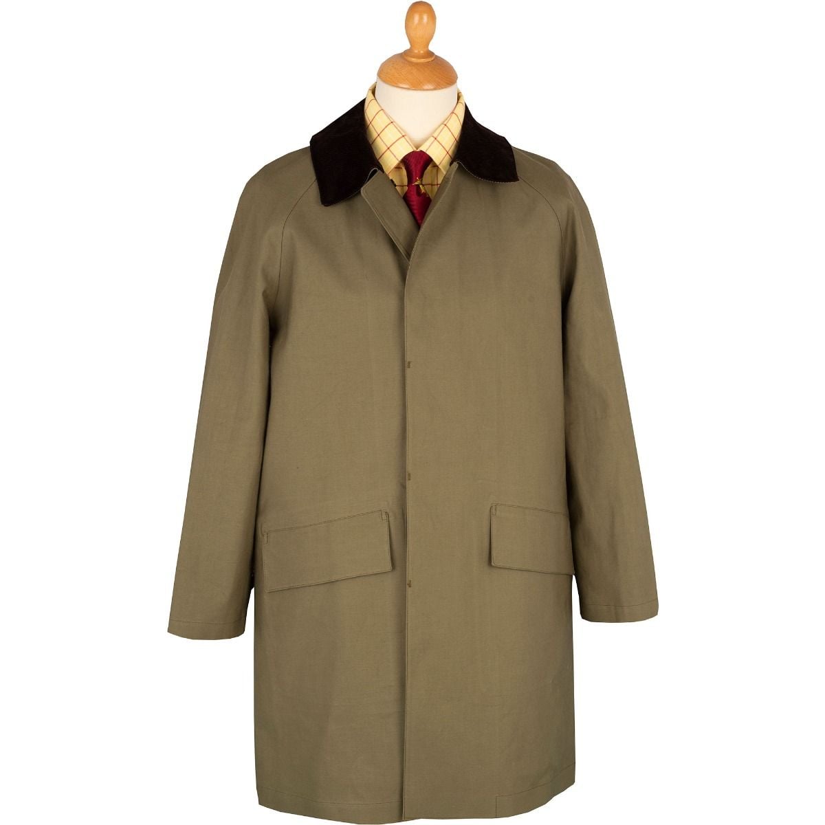 Khaki Huntsman Mackintosh with Corduroy Collar